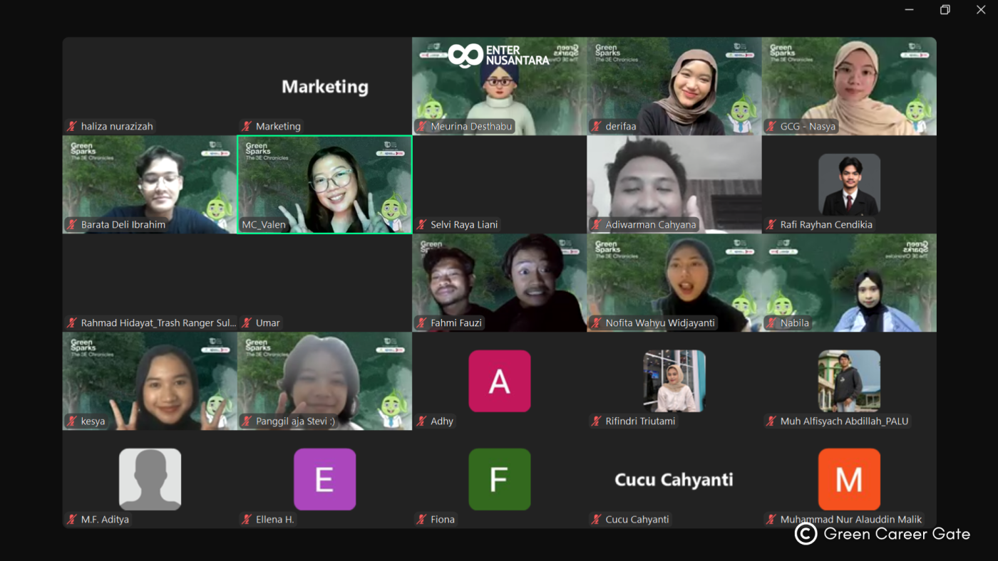 Guided by the collaborative spirit built by young people, this event was successfully organized thanks to the cooperation and initiative of Green Career Gate, as well as the presence and contribution of Enter Nusantara as one of the main speakers, represented by Naba Hudani as Volunteer Coordinator at Enter Nusantara. In the discussion session, Enter Nusantara shared its experience in strengthening the energy transition ecosystem and encouraging youth involvement in action-based environmental movements.