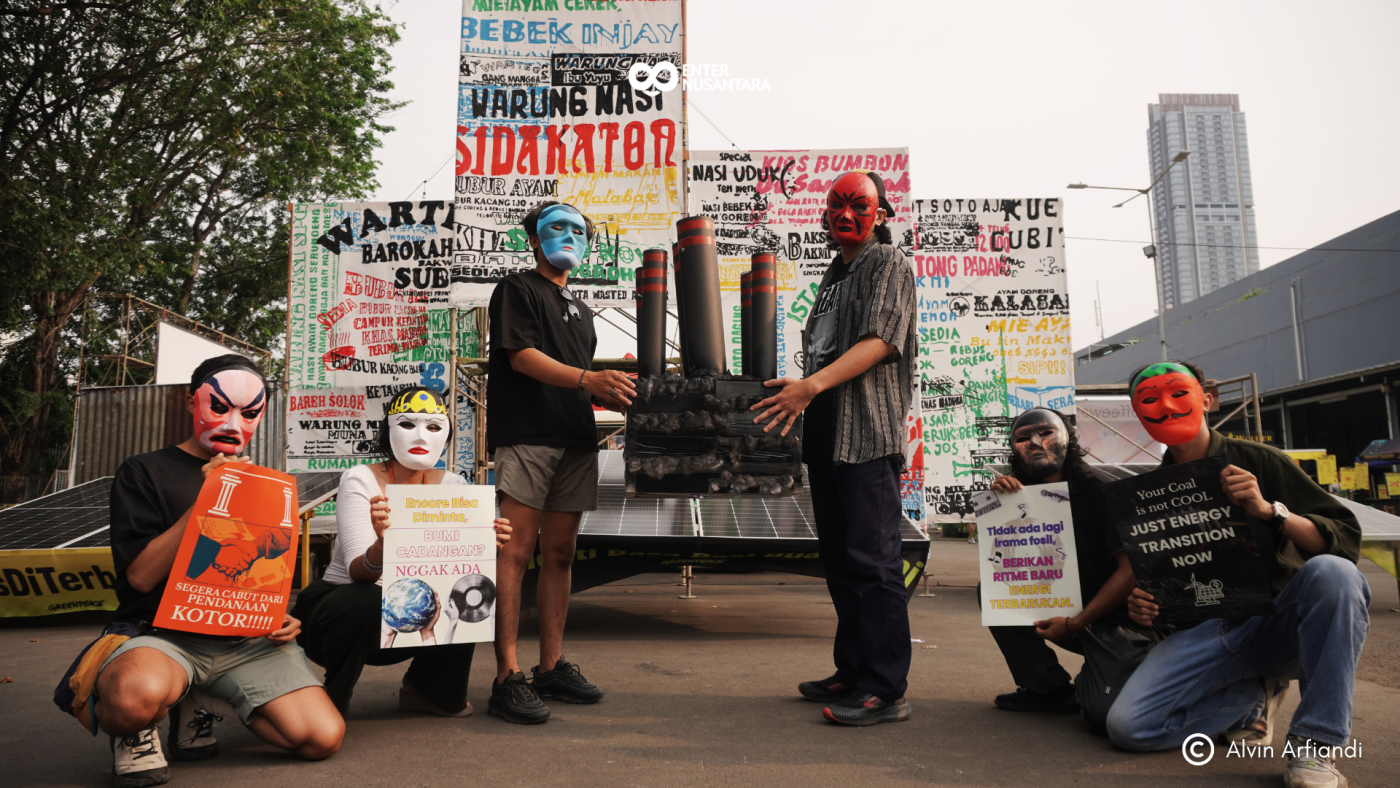 Enter Nusantara used a small theatrical action amid the crowd to urge banks and the government to immediately end coal project funding and demonstrate a serious commitment to a just, inclusive, and community-based energy transition.